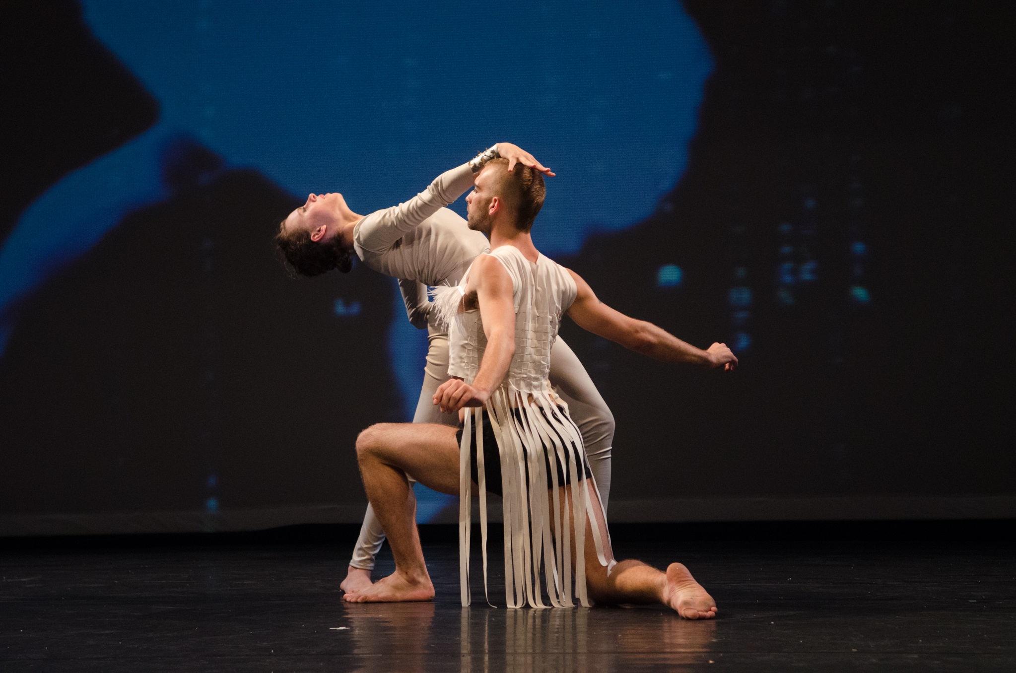רוב הזמן ההקרנה על המסך האחורי גוברת על ההווה שמתרחש על הבמה, ושהמחול שמקורו בפולחן הקולנוע, מתקשה להחזיק את עצמו כשהוא לא מנותק מהתוכן. הופך את המבצע החי, טוב ככל שיהיה, לנטול פרטים ואיפיונים ספציפיים. רק התמונה הראשונה בה רקדנית בודדה נעה מול צללית ענקית שאיימה לכסות את המסך האחורי, הצליחה להחריד אותנו עם הכתם הכהה הזה שנדמה היה שהוא יכול להגיע לכל מקום, עד שהוא שיכול לעבד ולשנות את תמונת חיינו.